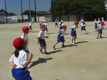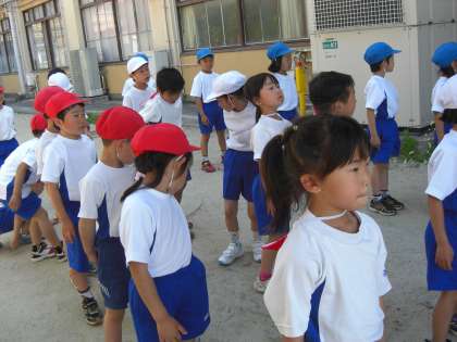 昨日に引き続き,今日も運動場で練習しました。自分の立ち位置を忘れてしまっているか心配していましたが,みんな,ちゃんと覚えていました。今日は,新しい立ち位置を覚えました。