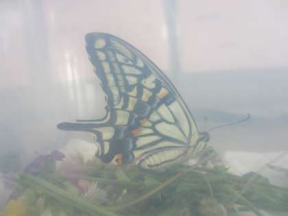 2年生の教室で飼っていたさなぎが,ついに羽化しました。