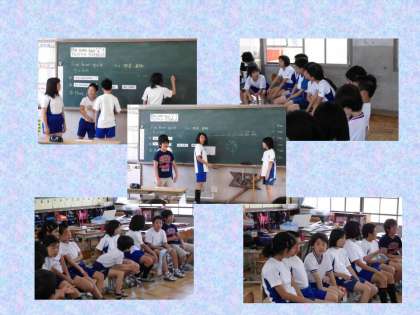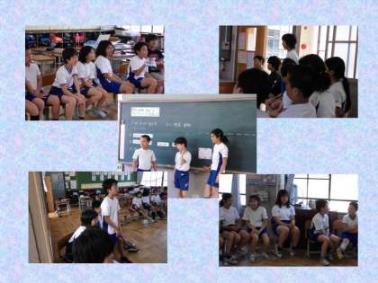 クイズを解くために,“Do you have〜?”や“How many letters?”“Hint,please.”など,これまでに学習した言葉を上手に使って尋ねることができました。