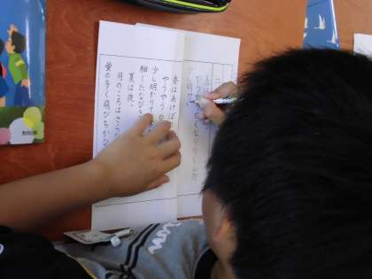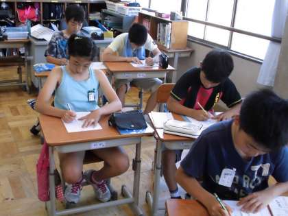 「あぁ,曲がった〜!!」「字が小さすぎた。」と自分の書いたものを見ながら,気になった点がたくさん見つかったようです。