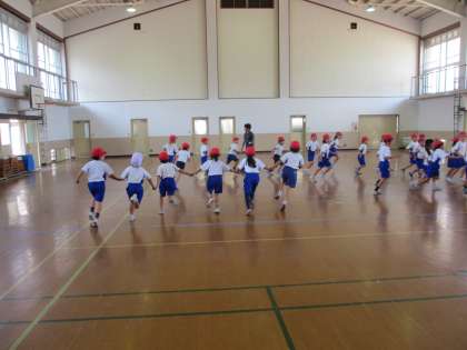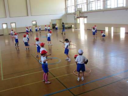 回しながら自分も回ったり,ジャンプしたり,歩いたり・・・