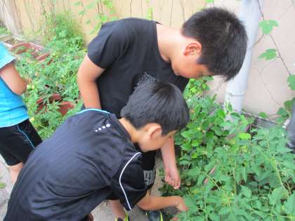 健康委員会では,環境委員会と協力してトマトを栽培しています。