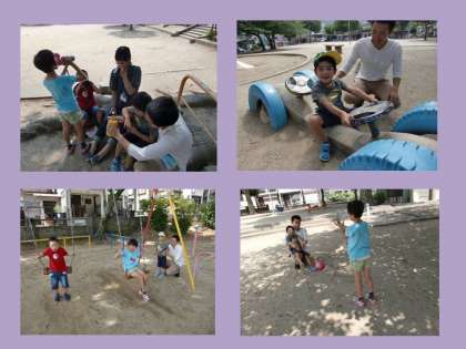 バスにのって校区内の公園に行ってきました。バスにのるときのルールを意識して乗ることができていましたね。公園では,いろんな遊具で遊ぶことができました。また,みんなでバスにのって出かけることができたらいいですね!!