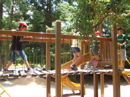 園内にある遊具で遊んだり,広場でおにごっこをしたりと