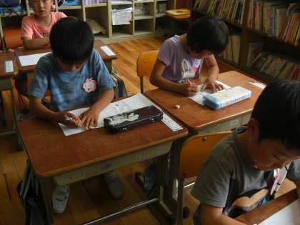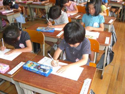 つくし・ほたる・はなび…をお手本を見て書きました。今日は,消しゴムを使わずに書きあげることをめあてにしました。みんな真剣な表情で書いていました。