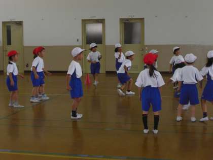 今日も,雨でプールが中止になりました。そこで,体育館でドッチボールをしました。だんだんルールも覚え,楽しんで活動することができました。
