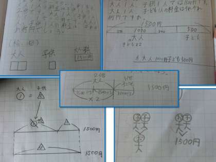文章題を解くための絵や図をかきます。