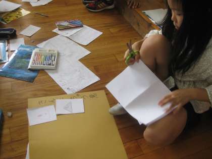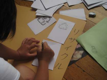 いろいろな記号を集めてきた子どもたちは,グループごとに分類をしていきました。