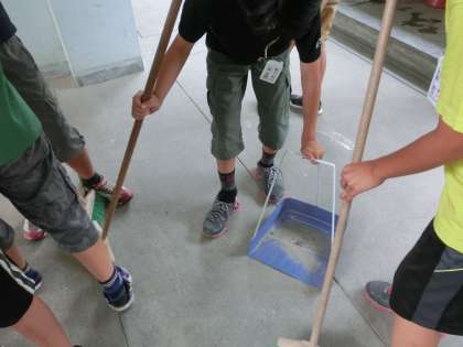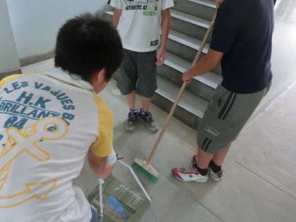 本館1階は6年生,本館南階段は5年生が掃除の担当です。