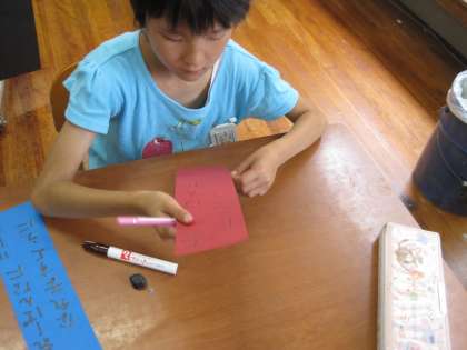 今日は短冊作りです。「ほんをたくさんよみたいです」「カレーパンナになりたいです」「うどんをたくさんたべたいです」など面白いお願い事がたくさんでした。短冊と吹き流しを飾ると,すっかり七夕の季節らしくなりました。