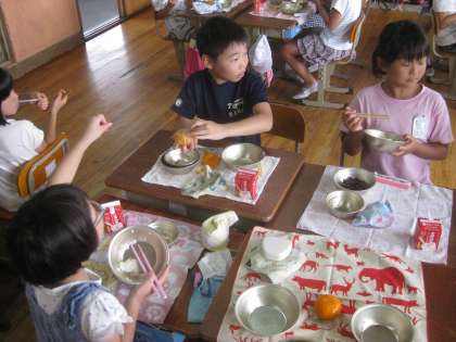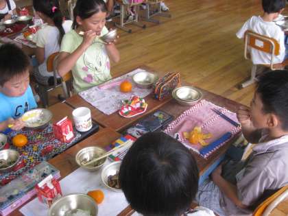 今日の給食には,みかんがありました。