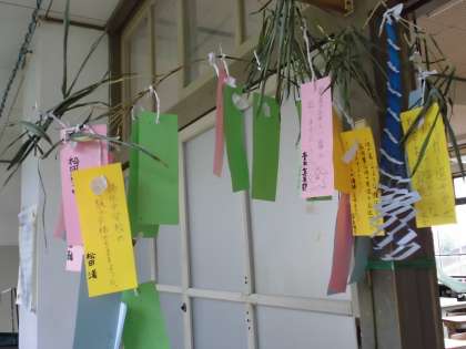 そこで,みんなで短冊に願いごとを書き,教室に飾りました。