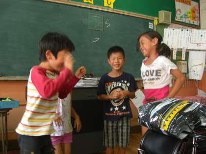 おわらいが大好きな子ども達がいます。今日から“おわらいがかり”が発足しました。終わりの会でデビューしました。2時間目は避難訓練があって緊張して,3・4時間目はプールで思いっきり水遊びを楽しんで,1日,とても頑張りました。そんな中,おわらいがかりさんがいっぱい笑わせてくれました。
