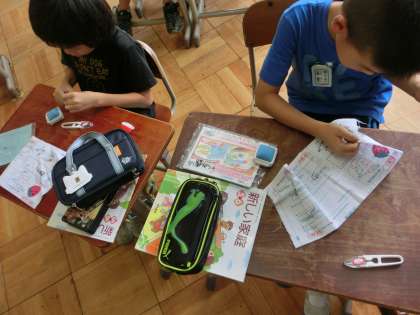 今日は,「五」年「一」組の数字と,名前の縫い取りをしました。