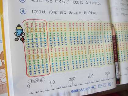 数が大きくなればなるほど,イメージしにくいですが,1000という数を目で見て数えると,多さがよく分かりますね。