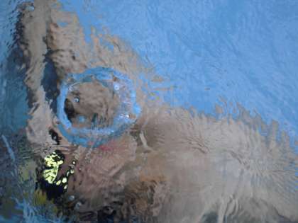 水の中に潜り,何やら面白そうなことをしている子どもを発見。