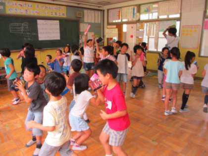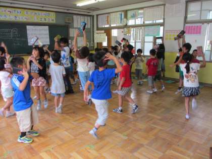 お祭りの音楽に合わせて体を動かしながら歌いました。