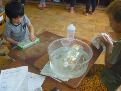 今日の算数は・・・そうです,「かさ」の学習です。