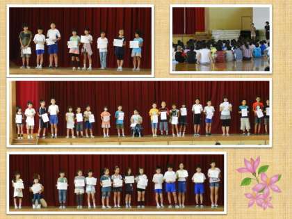 そんな中で朝会がありました。今日は硬筆作品の表彰や絵画展等の表彰があり,たくさんの子どもたちが舞台に上がって,全校の子どもたちから「おめでとう」の拍手をもらいました。