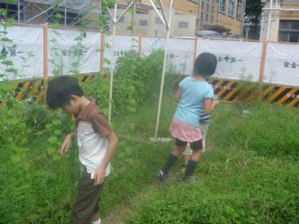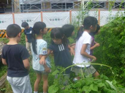 5時間目の生活で,中庭に生きものを探しに行きました。