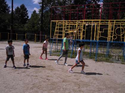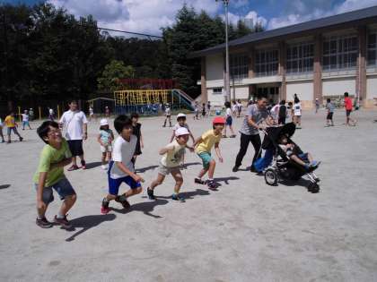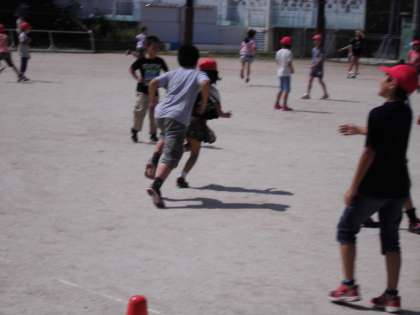 1〜6年生がとても楽しそうに校庭で遊んでいました。