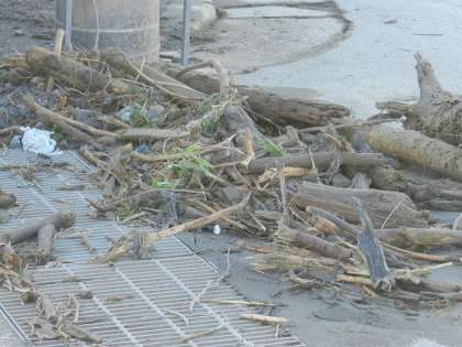 一夜明けた今日,それでも未だ爪痕は残っていました。所々に残っている土砂や流木。車が通るたびに舞い上がる土煙。