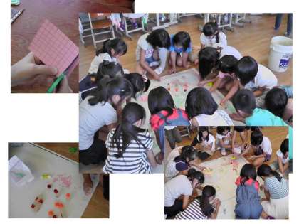 みんなで1平方メートルは何平方センチメートルであるかを考えました。