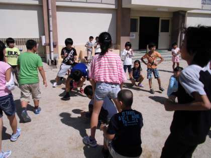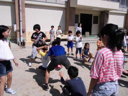 今日の中間休みは,運動委員会の人が企画してくれた「ボール送り大会」でした。