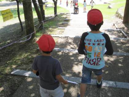 子どもの楽園に着いてすぐ,「自然を見つけようビンゴ」をしました。