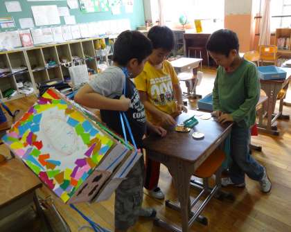 朝の教室では,最後の仕上げが行われています。