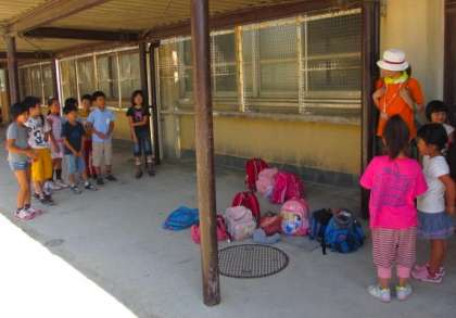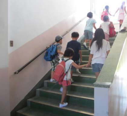 ドキドキしながらも,手をつないでゆっくり歩きながら教室まで案内します。