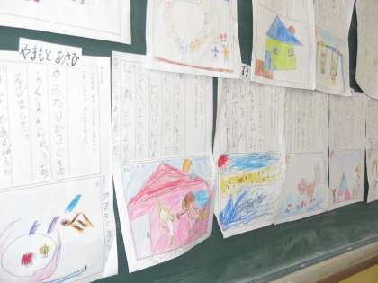 国語の時間に「ゆうだち」のお話の続き話を考えました。「にひきは,うみへいきました。…」「にひきは,こうえんへいって,すべりだいをすべりました。…」いろんなお話が生まれました。明日は,友だちが考えた素敵なお話を聞かせてもらいます。とても楽しみです。