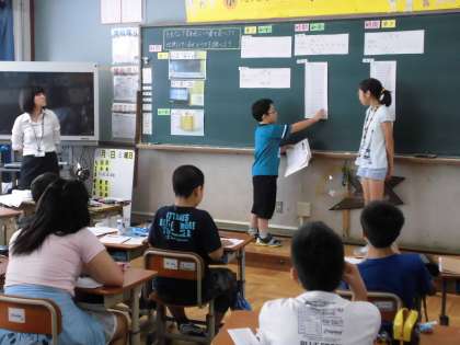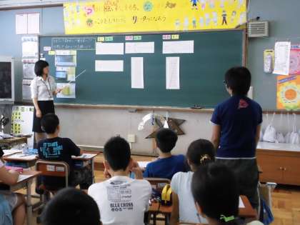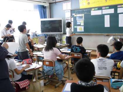 校内の先生がたくさん授業を見に来られ,子ども達も少し緊張気味でした。