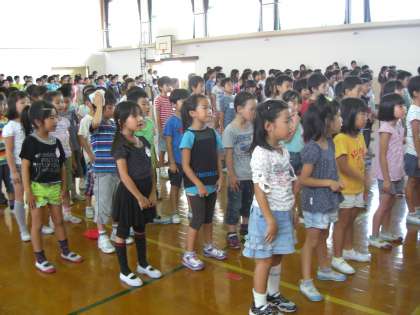 入学してから半年,終業式を迎えました。校歌を歌って,校長先生の話を聞きました。半年間で心も体も大きく成長しました。約20分程の式でしたが,一生懸命に話を聞くことができました。
