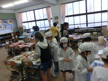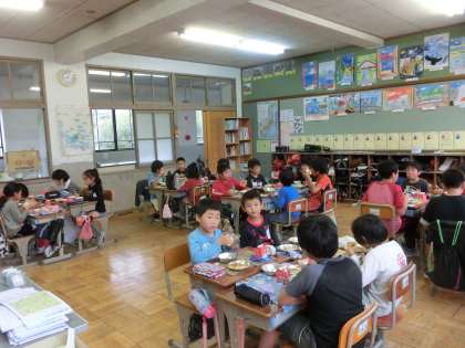 交流クラスが半分ずつ入れ替る,交流給食でした。