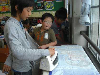 自分で選んだエプロンを作り始めました。今日は,エプロンの形に切って,アイロンをかけて,脇と胸の上をしつけしました。早く出来上がると,困っている友達の応援に行く子どもたちがたくさんいて,さすが,6年生です。11月には,このエプロンを持って校外学習に行く予定だそうです。出来上がりが楽しみです。