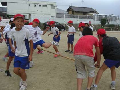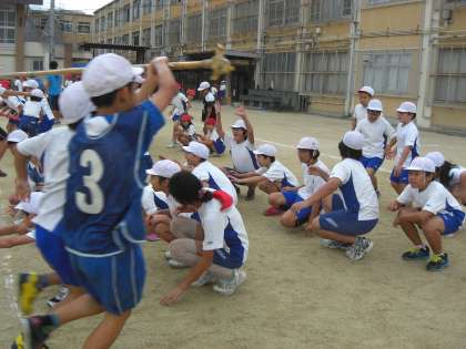 4年生と5年生と6年生で,ミニ運動会をしました。途中から,雨が降り出しましたが,クラス対抗リレーと台風の目を行いました。チームで走順を決めて,最後まで一生懸命に走りました。6年生は1組も2組も準優勝でした。