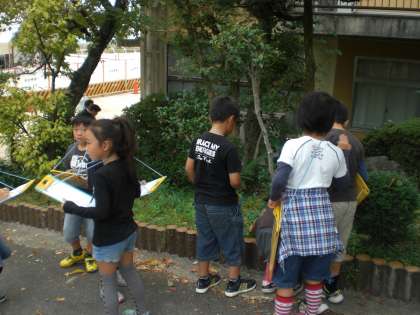 今日は,半日学級担任の日でした。とてもテンション高く学習に励みました。生活科で三錦の自然と親しむ『ネイチャーゲーム』に取り組みました。