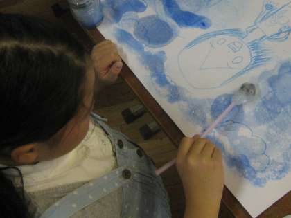 ストローを使って背景に色をつけたり,水をにじませてぼんやりとした色にしたりするなど,工夫の見られる制作場面でした。