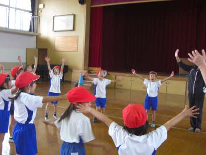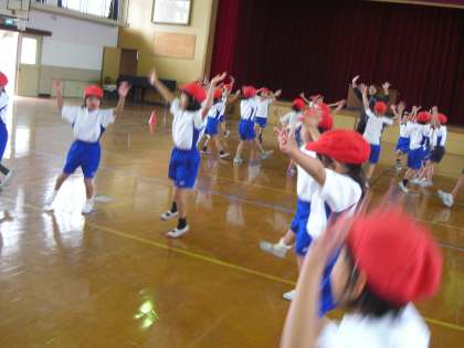 初めて,フォークダンスをしました。みんなで手をつないで踊りました。動きを覚えるのは,とても早いです。最後は,クラスみんなで円になって踊りました。