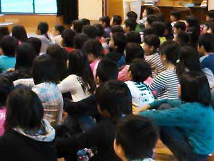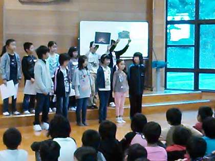 学校紹介です。大勢のお友だちの前で、少し緊張しましたが、静かに聴いてもらえたので、発表した子供たちは、嬉しそうでした。