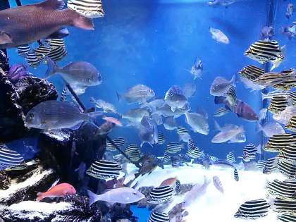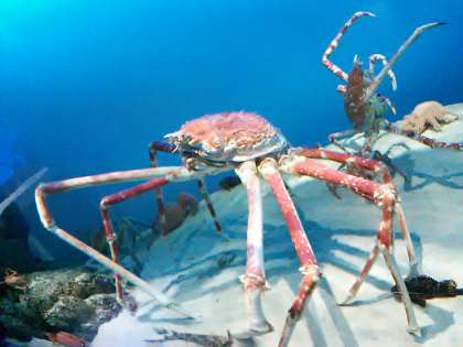 伊勢エビ,うつぼ,高足蟹。ひろ〜い水槽にうようよいます。