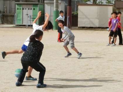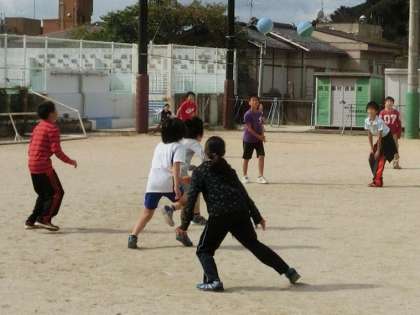 みんなあそびで「せんそうドッジ」をしました。