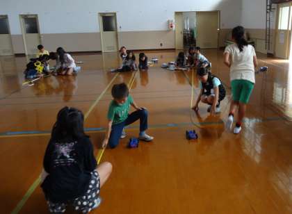 ゴムの本数をふやすと,車の進みかたはどのようになるのかということを調べるために実験を行いました。