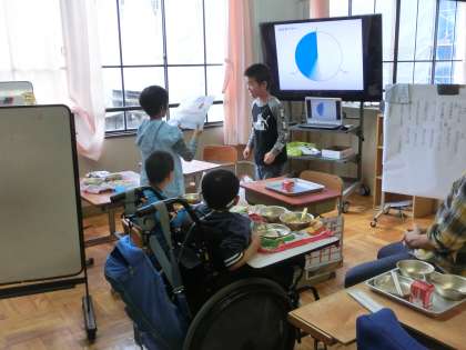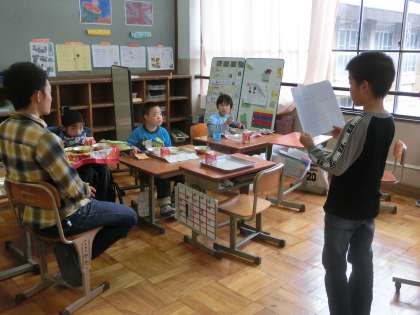 4年生が戻って来たたんぽぽ学級に,ふれあいの日のお知らせをしに行きました。