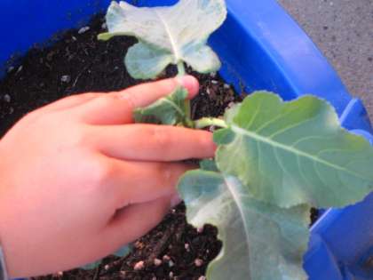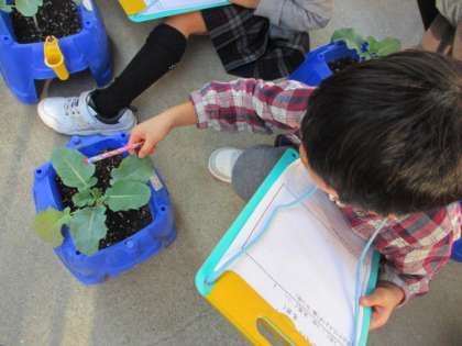 生活科で一人一人の植木鉢で野菜を育てています。