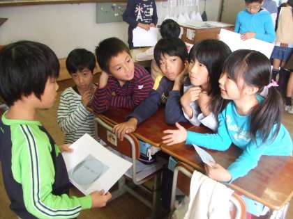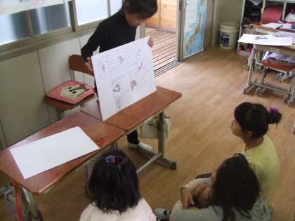 友達の発表を聞いて驚いていました。