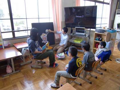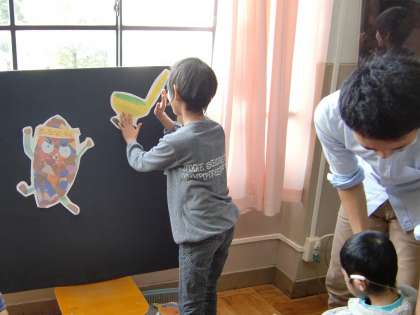 国語での新しい学習が始まりました。今回はパネルシアターをたんぽぽでします。今日はパネルシアターがどのようなものなのかを実際に見て,実際に触ってみました。
