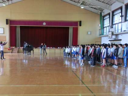 朝は「京都市歌」を,3校時には「地球星歌」を練習しました。