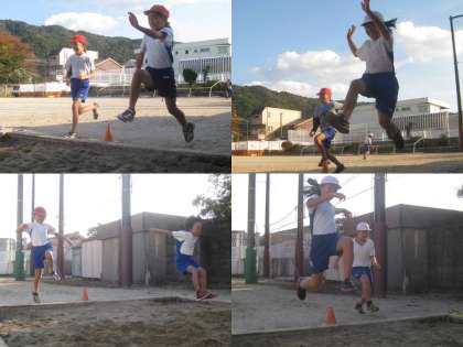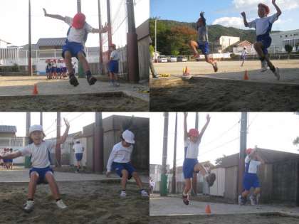 てつぼう運動の一方では,はばとびに取り組んでいます。